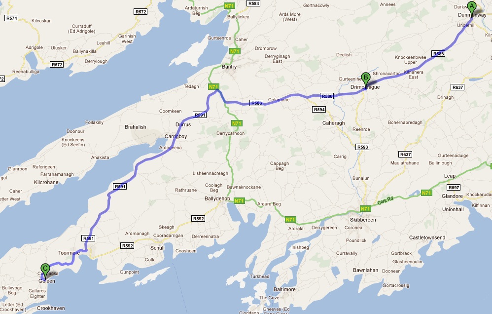 The race starts at the Amenity Car Park opposite the entrance to the Clogheen-Milcon walkway. When you exit the GAA Grounds, turn right, cross the road at the Yield sign, go past the Children’s Playground and turn left at the Mallow/N20 road sign. You’ll do one lap coming back to the Amenity Car Park. On the second lap, you’ll go straight ahead at the Garage, past another Garage and right onto Waterloo Road and the beginning of your hinterland odyssey.