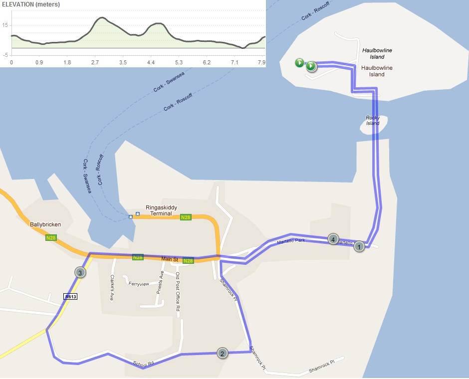 Those of you who attended the recent Novartis 5K will feel a sense of déjà vu heading off to Haulbowline. The former event could well be termed Ringaskiddy West and latter Ringaskiddy East, the difference being an extra 3km, allowing you to explore the delights of the lower harbour area. Getting there is pretty straight forward! From the old Carrigaline road (R609) or the South Ring road (E30), get yourself onto the N28 heading for the Ringaskiddy Car-Ferry. As you enter Ringaskiddy, instead of turning right for Novartis or left for the Ferry terminal, you go straight ahead through the village and follow the road all the way out to Haulbowline Island.