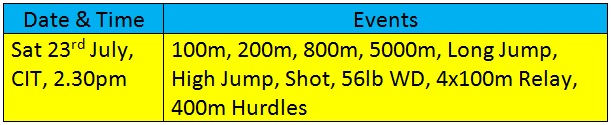 The fourth in this popular summer series of six graded T&F meetings takes place at the CIT Track. At first glance, the schedule of events on offer may not appear broadly appealing. After all, the Steeple Chase is normally the preserve of Junior and Senior athletes. Not to worry folks! The organisers have assured us that the obstacle course will be scaled back to accommodate athletes in all age brackets. In this context, the Steeple Chase promises to be a fun and novel experience for anybody ready to accept the challenge. The Medley Relays, as per usual, require teams of four individuals. Instead of sharing the load however, two persons will be required to run 200m and the other two lucky, or unlucky individuals depending on your perspective, will complete 400m and 800m respectively. From experience at training sessions, you’ll know that Medley Relays are exhilarating for both onlookers and participants. So, on reflection, meeting number four would appear to have all the right ingredients for a fun-filled and exciting evening of entertainment. Admission is €5 and the graded events are open to athletes of all levels of ability.
